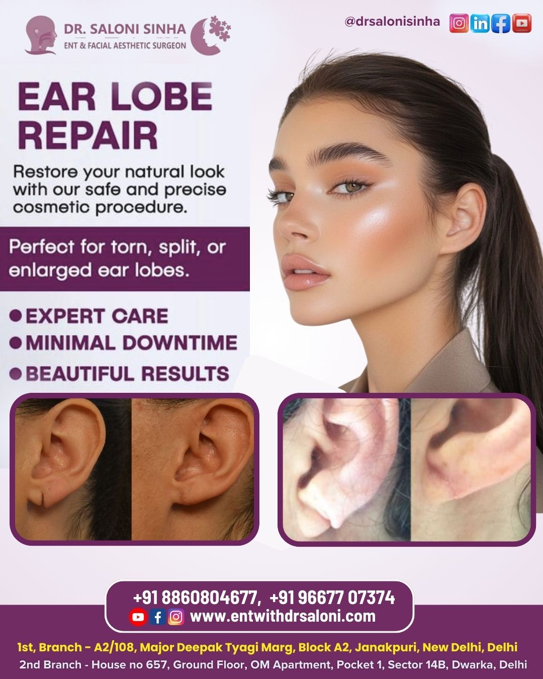Ear lobe repair Delhi - Dr. Saloni Sinha ENT Specialist